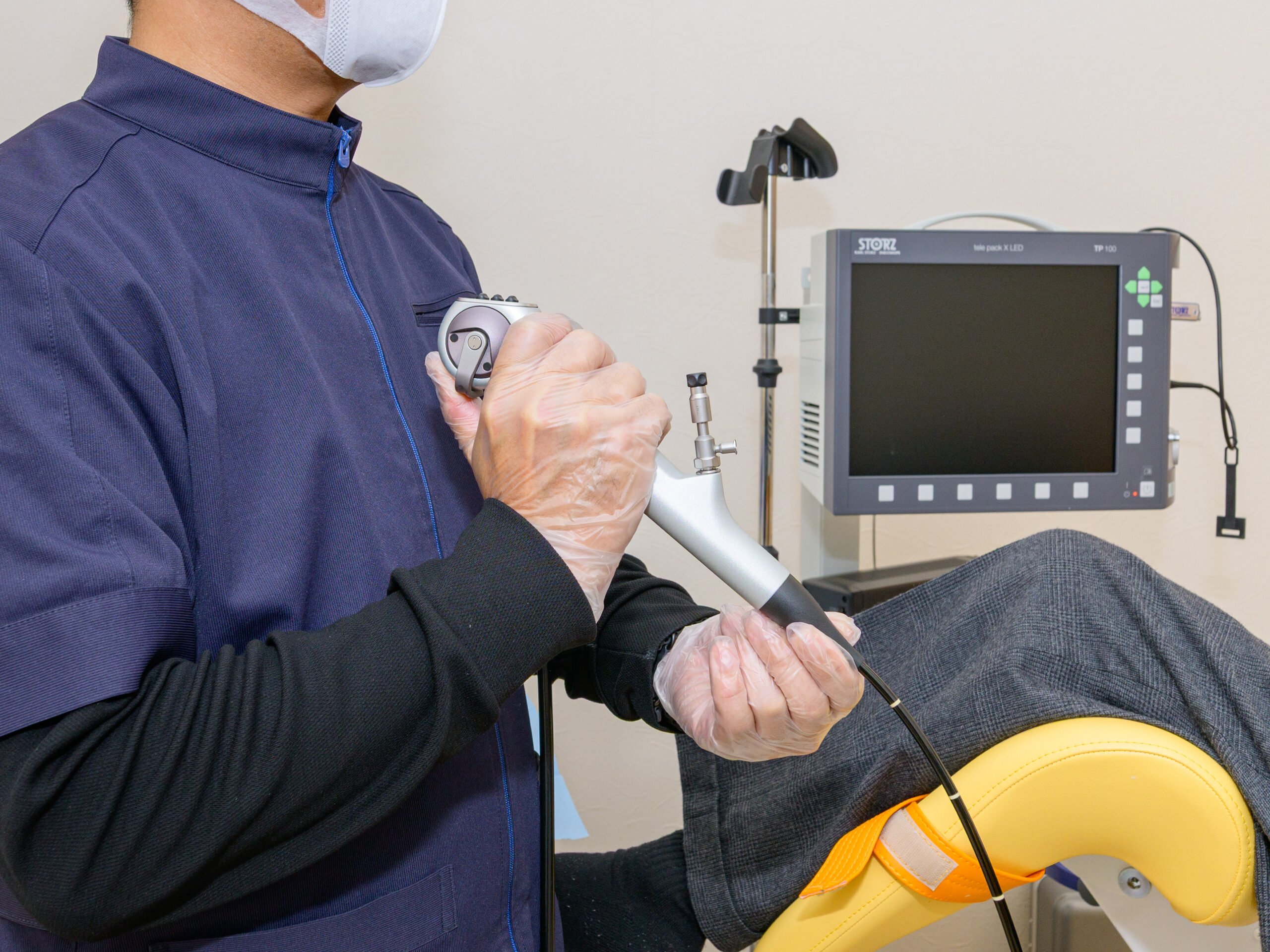 膀胱鏡検査は、膀胱の内部を直接観察するための検査です。この検査では、膀胱内を確認するために細長いカメラ(軟性鏡)を尿道から挿入します。軟性鏡を使用することで、従来の硬い鏡よりも痛みを軽減し、患者様にとって負担が少ない方法です。